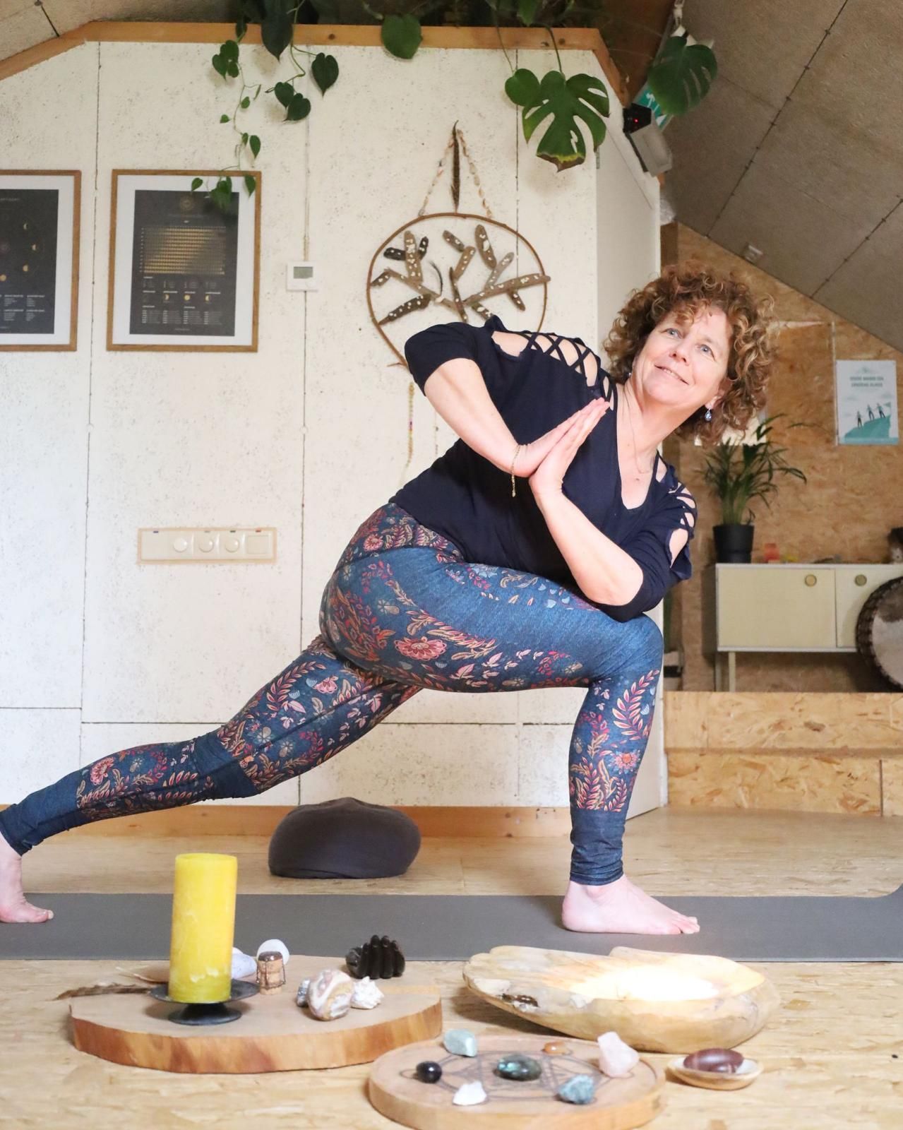 In mijn Hatha yogales ervaar je een flow afgewisseld met verstilling. Elke les heeft een thema voor een spirituele verdieping. Yoga is voor mij bewegen, sterk en soepel worden, adem, het ego met rust laten en jezelf de ruimte geven om even te mogen zijn.